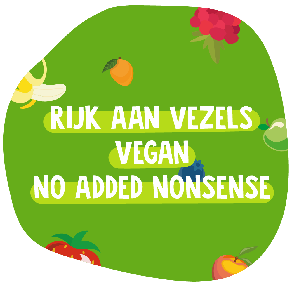 Voedingswaarden per 100g: Energie: 1376 kJ/328 kcal, vetten: 3,6g waarvan verzadigde vetzuren: 0,2g, koolhydraten: 66g waarvan suikers: 60g*, vezels: 9,8g, eiwitten: 2,5g, zout: <0,1g. *Dit product bevat van nature aanwezige suikers.