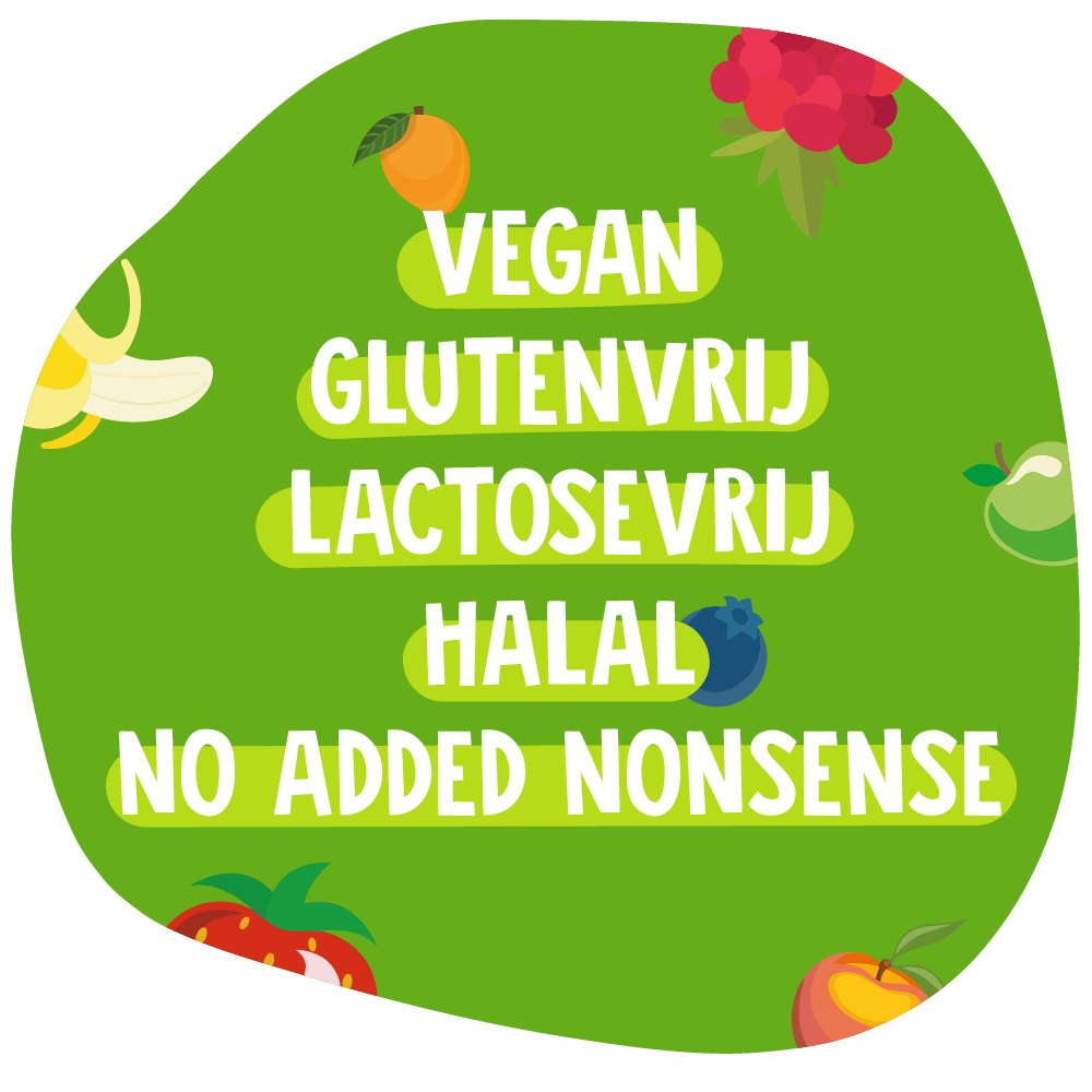 Geconcentreerde appelpuree*, geconcentreerd appelsap*, aardbeienpuree*, geconcentreerd aroniasap*, citrusvezel, geleermiddel: pectinen, natuurlijk aardbeiaroma met andere natuurlijke aroma’s. *Gemaakt van 176 g fruit producten (80 g geconcentreerde appelpuree, 66 g geconcentreerd appelsap, 29 g aardbeienpuree, 2 g geconcentreerd aroniasap) voor 100 g eindproduct.